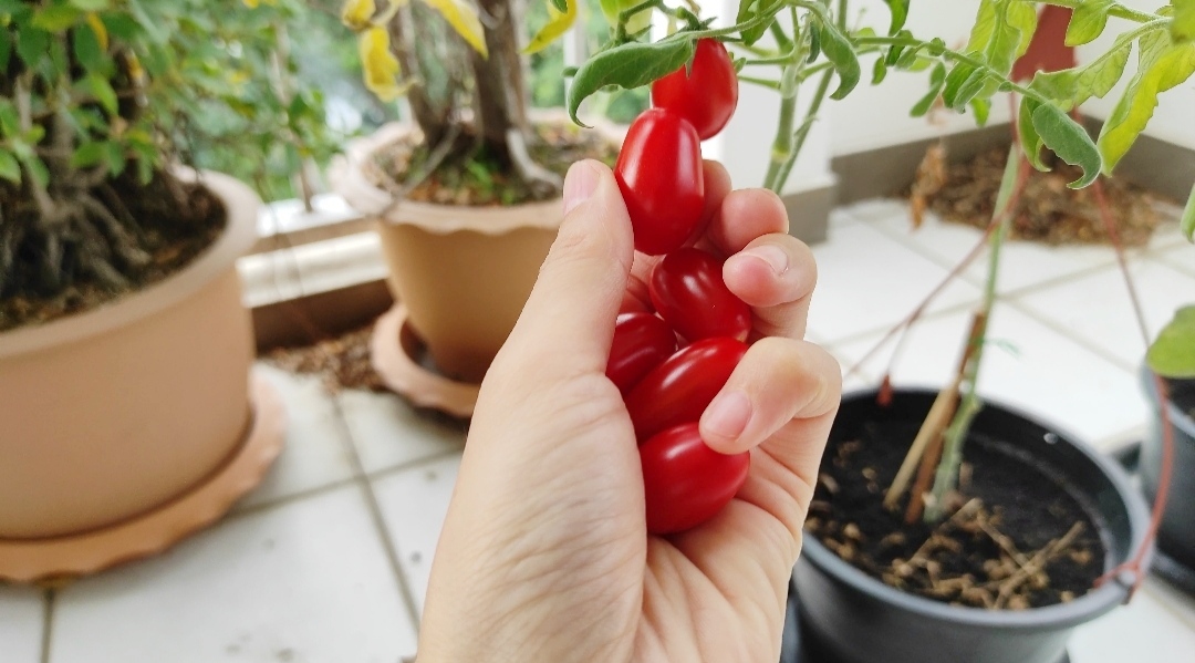 방울토마토를 본격적으로 수확해 먹기 시작한 건 11월이에요. 총 열 개로 시작한 화분은 중간에 낙오자들이 생겨 일곱 개로 줄었지만 저에겐 충분한 양이었어요.