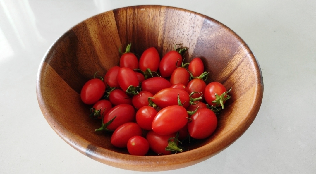 9월에 방울토마토가 열리기 시작했지만 붉게 익기까지는 시간이 꽤 걸렸어요. 한 달은 족히 걸린 것 같아요. 또 붉어진 애들도 만져보면 너무 딱딱해서 선뜻 따기가 망설여지더라고요. 얼른 맛을 보고 싶어 조바심이 났지만 잘 익을 때까지 잠자코 기다렸죠(실은 붉은 기가 돌자마자 하나 따 먹어봤는데 완전 안 익은 맛이어서 급실망한 후 기다리기로 했어요ㅋ).