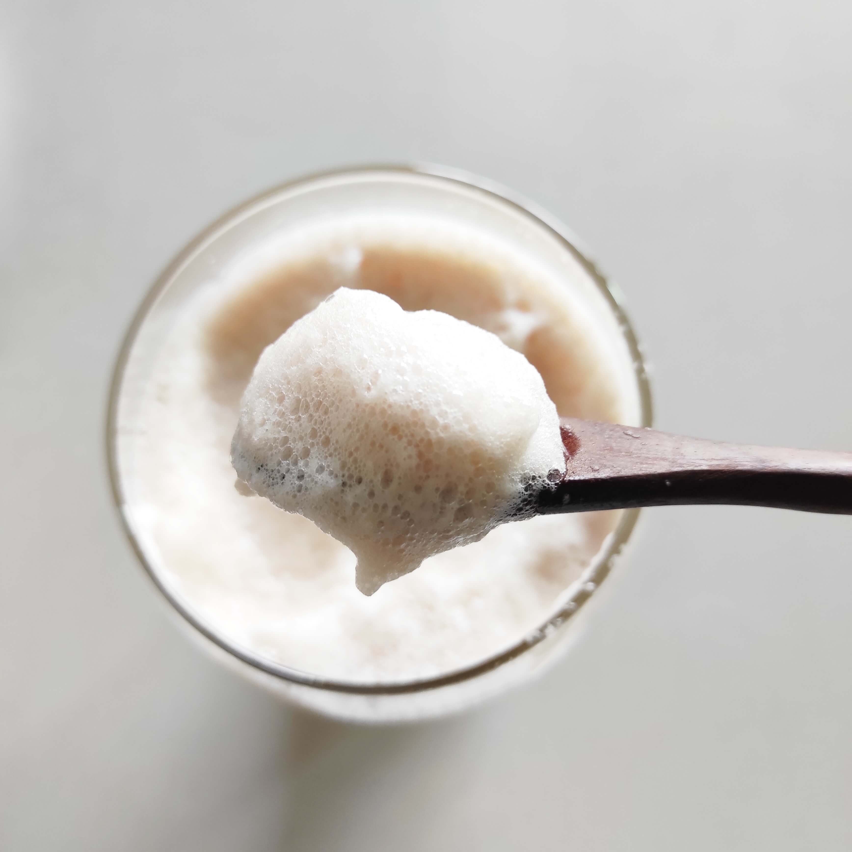감자가 잘 갈렸으면 컵에 따라 마시면 되는데요. 생감자주스는 크게 세 개의 층으로 나뉘어요. 맨 위의 거품, 중간층의 수분, 그리고 맨 아래가 전분으로 거품부터 하얀 전분까지 각각 포함하는 영양 성분이 다르니까 어느 하나 빼놓지 않고 모두 마셔야 해요.