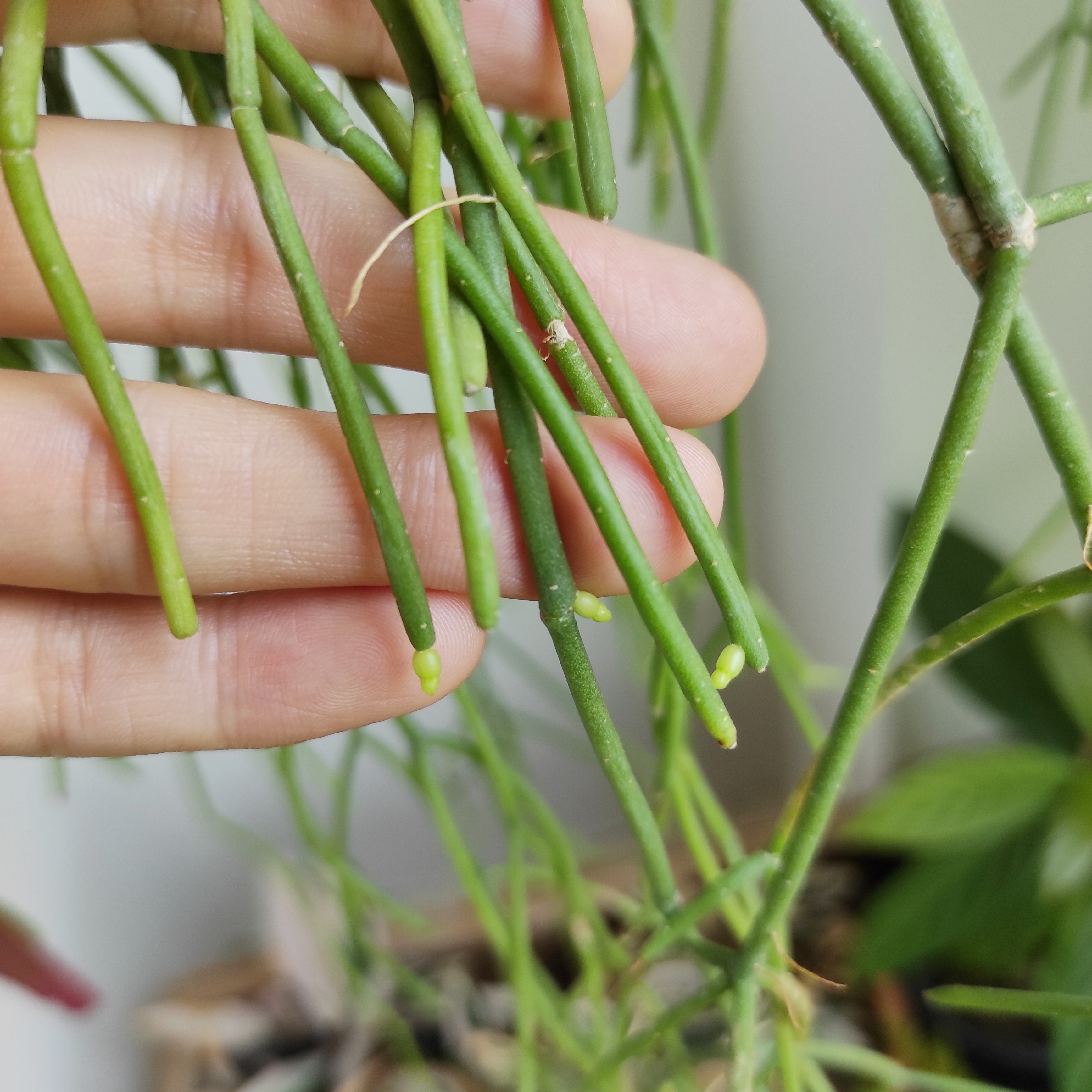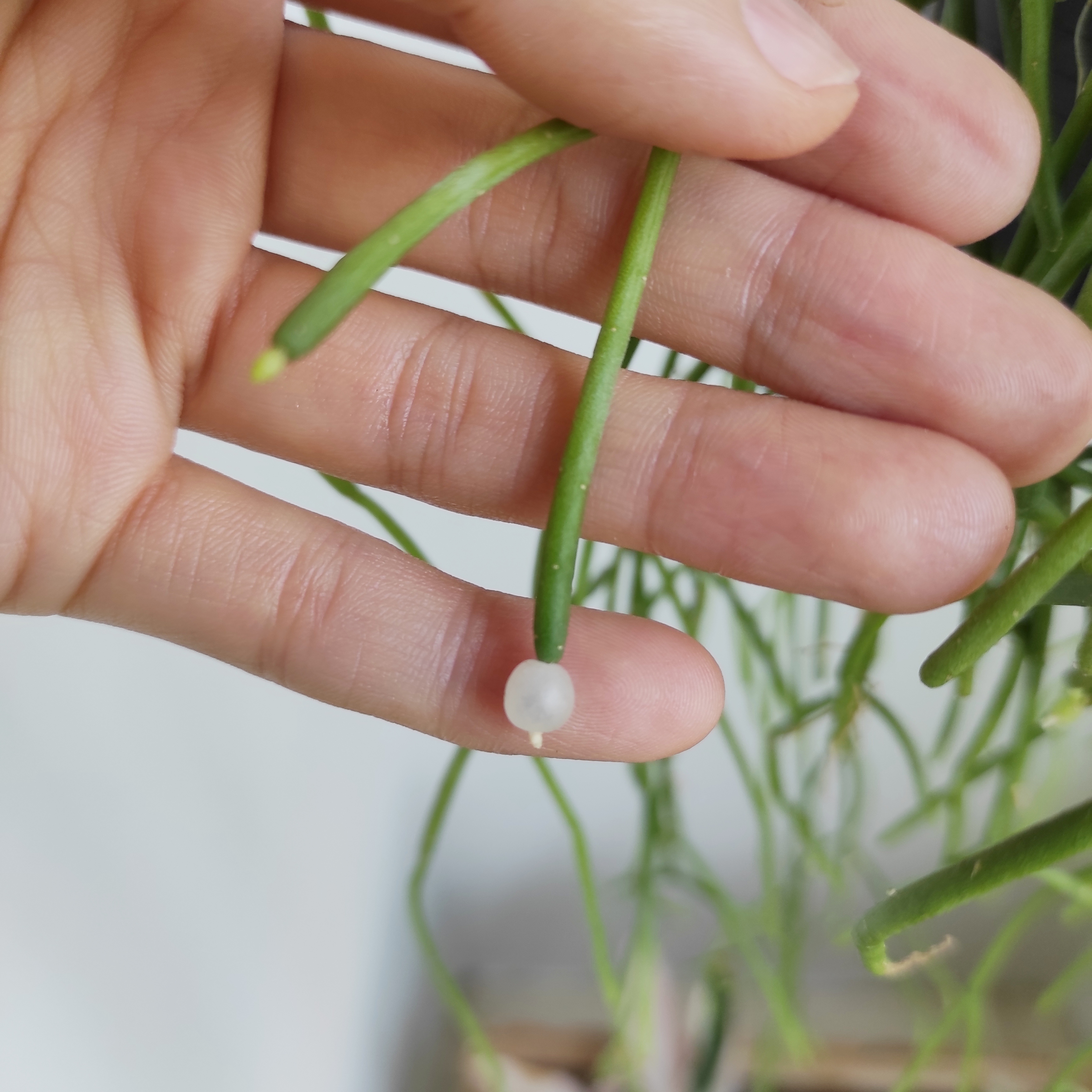 가느다란 마디마디로 성장을 해가는데 하나의 마디 끝에서 두 개의 줄기가 갈라져 나와 또다시 각각의 마디로 커나가는 식이에요. 그리고 그 마디 끝에 불투명한 흰색 구슬 같은 게 달려서 립살리스 화이트라고 불리는 거죠.