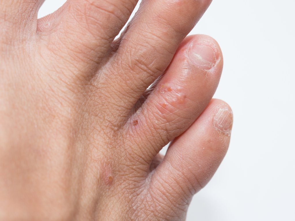 한포진은 주로 손바닥과 발바닥의 측면이나 손가락과 발가락 사이사이에 발생하는데요. 대표적인 한포진 초기증상에는 작은 수포, 가려움, 각질, 따가움 등이 있어요.