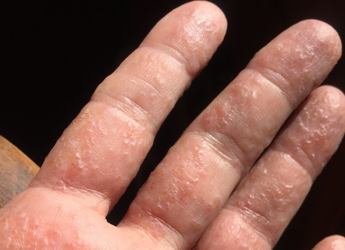 또 다른 차이는 가려움 정도에 있어요. 한포진은 매우 심한 가려움을 유발하는 데 반해 농포성건선은 그에 비해 가려움이 덜한 편이에요. 또한 농포성건선은 위에 이야기한 것처럼 손이 빳빳해질 정도로 각질이 매우 두껍게 형성되지만 한포진은 비교적 껍질이 얇은 편이고요.