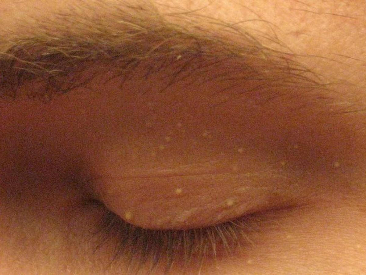 언제부턴가 눈 주위에 하얀 알갱이 같은 게 종종 생기기 시작하더라고요. 물집이라면 색이 투명하고 금방 터질 텐데 이건 좁쌀 같은 단단한 흰색 덩어리로 터질 기미가 전혀 없고 여드름 짜내듯 손톱으로 짜봐도 꿈쩍도 하지 않았어요.