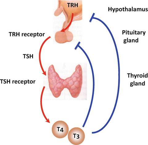 (갑상선기능저하증의 경우 갑상선호르몬인 T3와 T4의 수치는 낮고 갑상선자극호르몬인 TSH의 수치는 높음. 갑상선호르몬의 양이 조금만 변해도 혈중 TSH의 농도가 큰 변화를 보이기 때문에 갑상선 기능을 확인할 때는 먼저 혈중 TSH 농도를 측정하게 됨.)